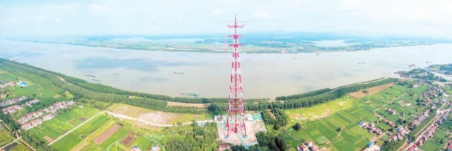 螺山长江大跨越工程跨越长江、连接湘鄂两省,跨越段长3900米,新建铁塔6座。其中跨越塔2座,在南岸的临湘市和北岸的荆州洪湖市各建一座,隔江相望,高度均为371米,比324米的埃菲尔铁塔还高了47米,单座铁塔重量为4400吨。