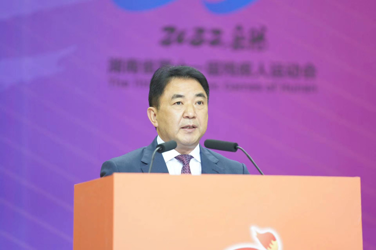 曹普华向出席开幕式的各位领导、各位来宾,全体运动员、教练员、裁判员表示热烈的欢迎。他说,省残运会进入岳阳时间以来,我们秉持简约、绿色、安全、精彩的办会理念,精心筹备、精细打磨,确保“两个省运、一样精彩”“两次相遇、一样难忘”。绽放生命精彩,礼赞自强不息,今天在场的运动员,都是最美最可爱的人。作为东道主,我们将以省残运会的成功举办为契机,围绕“参一回赛、圆一个梦”,全面展示残疾人运动的竞技之美、精神之美、生命之美;用爱“聚一团火、发一份光”,持续点燃自强自立、奋斗不止,挑战自我、战胜自我的精神引擎;聚力“办一次会、兴一座城”,乘着党的二十大东风,加速释放省运会和省残运会红利,奋力谱写建设现代化新湖南的岳阳新篇章。