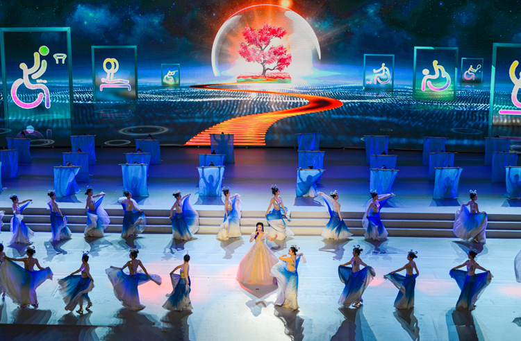 开幕式上表演了文体展演,演出的序幕为《一起飞》,尾声为《爱无疆》,整场演出分为上篇《心有光》、中篇《花绽放》、下篇《梦非凡》,生动诠释了本届残运会“我奋斗、梦非凡”的主题。