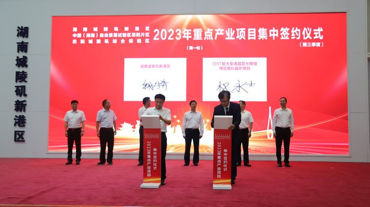 9月13日上午,城陵矶新港区举行2023年第三季度重点产业项目集中签约仪式,市委副书记、市长李挚,市政府秘书长孙志诚,企业家代表等出席并见证签约。