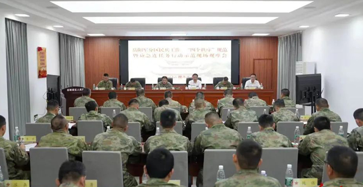 5月28日上午,岳阳军分区民兵工作和“四个秩序”规范暨应急连任务行动示范现场观摩会召开。省委常委、市委书记、岳阳军分区党委第一书记谢卫江,省委常委、省军区司令员王宇出席并讲话。