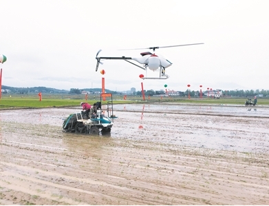 4月17日,平江县安定镇正黄村彩旗招展、人声鼎沸。全市春季水稻插秧同步精量施肥现场演示会在此举办,副市长喻昌现场观摩。