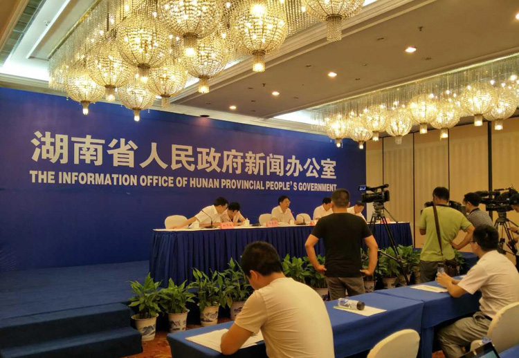 今天上午10点,湖南省人民政府新闻办举行防汛抗灾新闻通报会。岳阳市人民政府副市长、市防汛抗旱指挥部常务副指挥长唐文发赶赴长沙参会,并现场回答了央视记者提问。