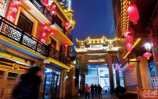 1月8日晚,长沙市芙蓉区登隆街历史步道,市民从街上经过。该历史步道长1.5公里,两侧建筑古色古香,夜色中彩灯摇曳,别有一番韵味。