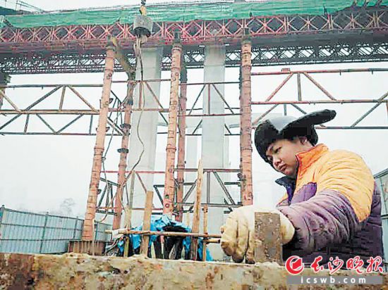 前日,长沙阴雨绵绵,室外寒气逼人。在湘府路快速化改造工程施工现场,工人冒着严寒抓紧施工。