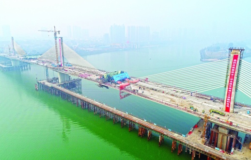 1月27日,由中建一局承建的采用悬臂浇筑法施工的矮塔斜拉桥——衡阳市东洲湘江大桥顺利合龙。该大桥全长974米,其中主桥长660米,主桥宽38.5米。东洲湘江大桥是衡阳市雁峰区和珠晖区的重要连接线,预计4月30日达到通车条件。