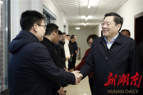 (2月13日上午,省委书记杜家毫在省委办公厅看望慰问干部职工,并召开座谈会。以上图片均为湖南日报·华声在线记者 罗新国 摄)