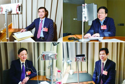 3月8日,住湘全国政协委员张大方(左上)、张健(右上)、王国海(左下)、李云才(右下)通过政协云平台与后方远程连线交流。