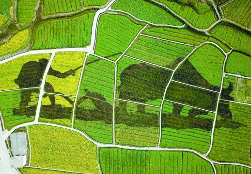 3月26日,吉首市矮寨镇排兄村,春暖花开,阡陌交通,差异化种植农作物构成的创意景观——“春耕图”,提升了美丽乡村的文化内涵。刘振军 摄