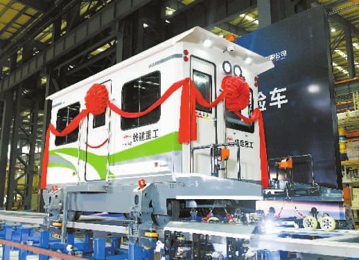 4月3日上午,我国首台中低速磁浮智能巡检车在中国铁建重工集团长沙第二产业园下线。