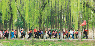 4月4日,学生在安徽淮北濉河公园踏青。清明时节,人们踏青游、放风筝、做青团……在传统节俗中感受清明文化。周方玲摄(新华社发)