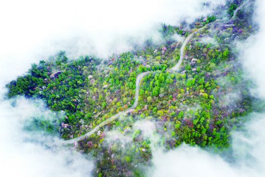 4月3日,湖南大围山国家森林公园樱花谷,粉白色野樱镶嵌在碧绿的树林间,在雾中若隐若现。该公园有野生樱花树上万株,12个品种,大多分布在海拔1200米高的山坡上,将硬朗的高山装点得分外妖娆。 彭红霞 摄