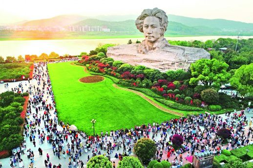 4月6日,游客和市民在长沙市橘子洲景区休闲游玩。当天是清明小长假第二天,三湘大地春暖花开、桃红柳绿,人们纷纷出游踏青,享受春光美景。