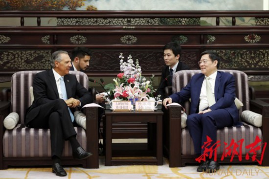 4月23日晚上,省委书记、省人大常委会主任杜家毫在长沙会见了何塞·拉蒙·佩拉尔塔一行。湖南日报·华声在线记者罗新国 摄