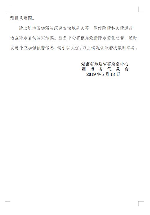 记者昨日从省气象台获悉,根据湖南省气象台2019年5月18日短期气象预报情况,湖南省地质灾害应急中心与湖南省气象台联合会商得出如下结论:自5月18日20:00至19日20:00,受降雨影响,湘中以北部分区域发生突发性地质灾害风险较大(黄色预警)。