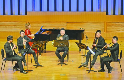 5月24日晚,艺术家在演奏肖斯塔科维奇《第二圆舞曲》。当天,雅韵三湘·音乐经典“声”振林“木”音乐会在湖南音乐厅上演,《C大调木管五重奏》《第二圆舞曲》《瑶族舞曲》等音乐作品,给现场观众献上了美妙的音乐享受。 湖南日报记者 李健 龙文泱 摄影报道
