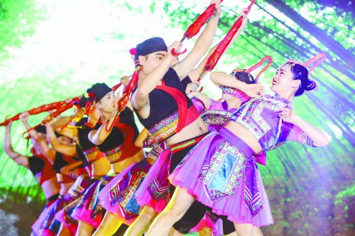 5月23日晚,临武县宝玉石文化产业园“非遗大舞台”,汝城县非遗中心选送节目——畲族舞蹈《钩钩伞》正在上演。当天,2019年郴州市非物质文化遗产宣传月启动仪式暨全市非遗展演活动在临武县举行。