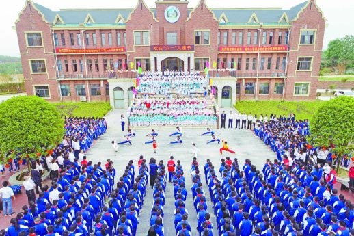 5月29日,湖南师大思沁新化实验学校,学生在表演当地传统武术——梅山拳。当天,该校开展“传承武术之乡,强健少儿体魄”庆“六一”主题活动,学生通过文艺和武术表演等形式,展示才艺,欢庆“六一”。
