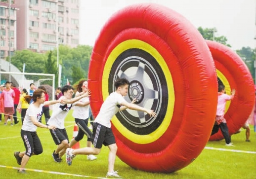 6月1日,参赛队员在进行“时代巨轮”项目比赛。当天,由湖南省直机关委员会、湖南省体育局等主办的“让爱住我家,快乐你我他”省直单位家庭趣味运动大赛,在湖南省人民体育场举行,来自59个省直单位的1000余人参加。湖南日报记者 傅聪 摄