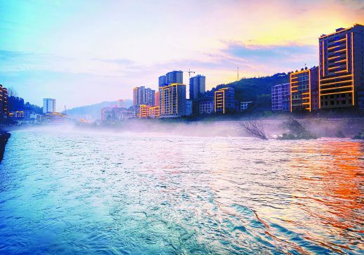 6月27日傍晚,绥宁县巫水河长铺镇段,因为河水温度和气温存在较大温差,河面雾气腾腾,如梦如幻。