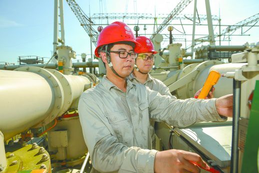 7月27日,湘潭800千伏韶山换流站,国家电网电力员工顶着烈日对断路器附件进行检查。近日,湖南省气象台连续发布高温预警,长株潭地区用电负荷不断攀高。韶山换流站电力员工加强供电设备的巡视、检查和维护,确保人民群众生产生活用电安全。(记者 辜鹏博 通讯员 阳仑 摄影报道)