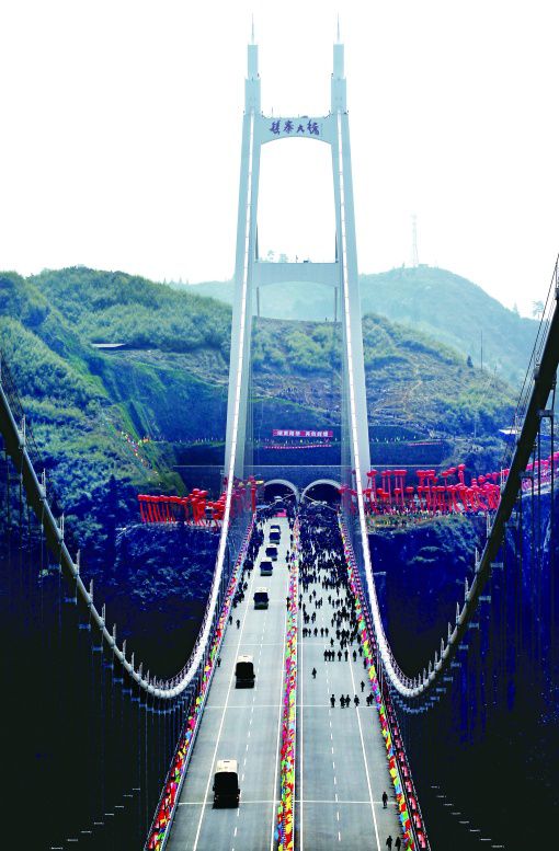 矮寨大桥成为世界上第一座塔梁分离式悬索桥,这也为未来山区悬索桥的建设提供了一种极具竞争力的全新桥型设计模式。