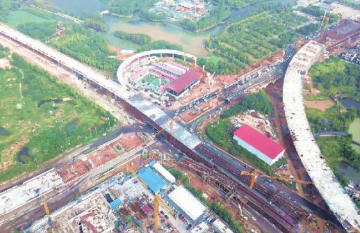 9月3日,长沙市湘府路(河西段)快速化改造工程横跨潭州大道段高架桥的连续梁体历经8小时灌注完成,高架桥初具雏形。该处工程的竣工为下层南北向高架桥的施工创造了条件,为该项目年底建成通车奠定了基础。(记者 石芳宇 通讯员 刘胡 杨宇 摄)