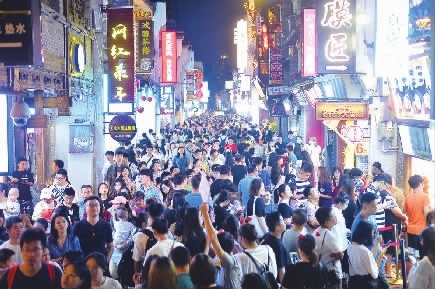 9月14日晚,灯火辉煌的长沙市太平老街热闹非凡。近年来,长沙成了国内外游客争相驻足旅游的“网红”城市,长沙的“夜经济”也成了带动消费市场红红火火的重头戏,擦亮了星城的文化“成色”。(记者 李健 摄)