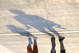 9月15日,长沙天气炎热,喜盈门范城附近,行人的影子倒映在地上。 图/记者杨旭
