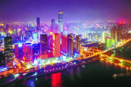 9月26日,长沙万达广场灯火璀璨。记者 辜鹏博 摄