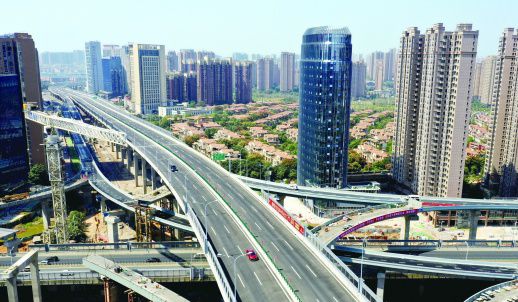 9月28日上午,湘府路快速路主线正式通车试运行,长沙城南再添一条交通“大动脉”。此次放开交通路段为花侯路以西至湘府路大桥主线桥梁、隧道,含8对平行匝道以及绝大部分地面辅道。万家丽互通此次仅放开北往西、西往北两条匝道,实现湘府路高架与万家丽高架顺接。(记者 田超 摄)