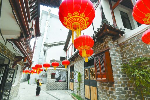 10月9日,长沙市芙蓉区观音井巷,沿街展出的长沙老照片成为街巷一景。今年国庆期间,该区白果园化龙池有机更新项目二期全面完工,观音井巷、东茅街巷、丰盈里巷、丰盈西里巷、苏家巷5条改造一新的老街正式开街,由湖南图片库提供的30余幅长沙老照片同步在老街展出。老照片和老街巷交相辉映,展现出浓郁的老长沙风情。(记者 田超 摄)