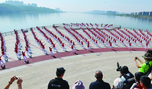 10月20日上午,千多名来自不同岗位的“舞者”在长沙橘子洲,一起表演社会主义核心价值观广播体操。湖南日报记者 田超 龙文泱 摄影报道