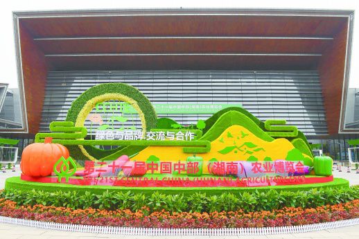 10月24日下午,长沙国际会展中心,第二十一届中国中部(湖南)农业博览会各项布展工作基本完成,喜迎盛会召开。图为展会主入口花坛摆放完成。(记者 徐行 摄)