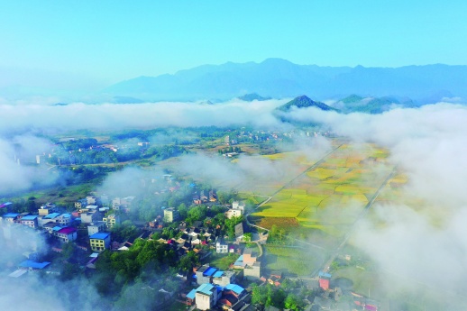 10月29日,道县寿雁镇白石寨村,晨雾弥漫在田园之上、山峦之间,呈现出梦幻般的秋之美景。何红福 李青阳 摄影报道