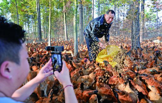 10月29日,邵阳县罗城乡保和村,省政协办公厅驻村帮扶工作队邀请短视频平台,通过拍摄抖音视频的方式帮助农户线上销售“保和鸡”。湖南日报记者 李健 通讯员 罗小军 摄影报道