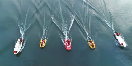 为提高消防指战员抢险救援实战能力,10月29日,郴州市消防支队在5A级景区——东江湖开展水域抢险救援实战拉动演练。演练中,抢险突击队员们利用冲锋舟、橡皮艇、水域机器人、救生抛投器等装备开展了编队搜救、孤岛救援、水上救生、潜水救援等科目的演练。通讯员 赵军 记者 张洋银 摄影报道