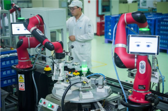 威胜是国内领先的能源计量设备、系统与服务供应商。在威胜科技园智能数字化车间,工人们与机器人正有条不紊地生产作业。2016年,威胜引入智能化生产线与智能协作机器人,实现了人机协作、自动化柔性组装、工序间物流自动传递,大大提升了生产质量和效率。