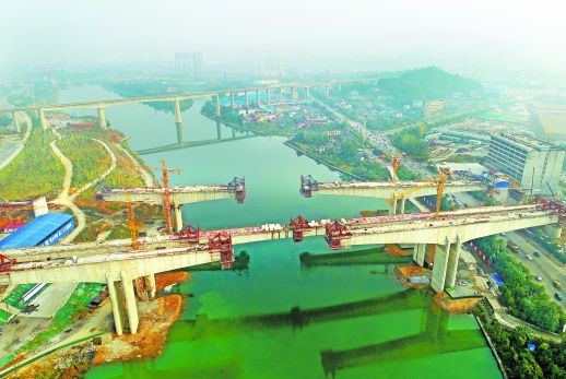 11月8日,渝怀铁路增建二线控制性工程——怀化舞水湾滩特大桥3号桥顺利合龙。舞水湾滩特大桥包含1、2、3号三座特大桥,并行于舞水河上。该铁路线全长625公里,建成后对落实国家“脱贫攻坚”战略,促进武陵山区经济社会发展有着重要作用。