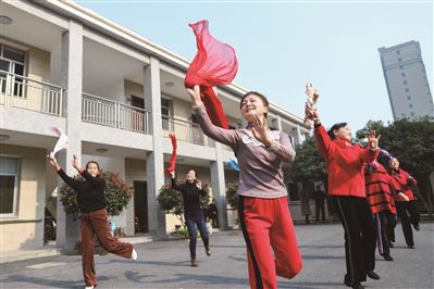 12月13日,临澧县安福街道朝阳街社区,退休老人在居家和社区养老服务中心跳舞。近年,临澧县社保服务中心大力推行社会化管理服务,积极协调文旅广体局、卫计局等部门,为全县160个村(社区)配置体育器材、开办“幸福食堂”、开展健康体检活动,受到老人欢迎。