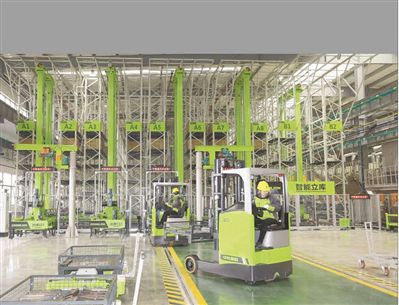 1月11日,中联重科建筑起重机工业园,目前全球最大智能塔机工厂的智能立库。 通讯员 摄