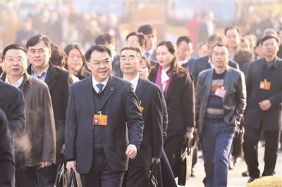 1月12日上午,湖南省政协委员精神抖擞,步入会场。当天,省政协十二届三次会议在湖南省人民会堂开幕。 湖南日报记者 傅聪 摄