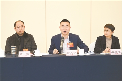 1月13日,舒兴华委员(中)在小组会议上就政协委员进校园及年轻人助力乡村振兴等问题建言。记者 辜鹏博 摄