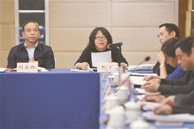 1月13日上午,颜玫委员(左二)在小组会议上就产业扶贫走可持续发展路线建言。记者 傅聪 摄