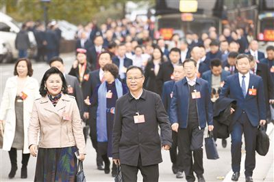 1月13日下午,省人大代表意气风发,步入会场。记者 傅聪 摄