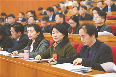 1月12日上午,省政协委员认真听取政协常委会工作报告。记者 辜鹏博 摄