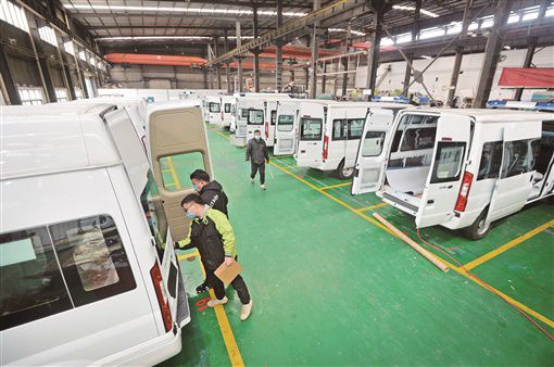 2月6日,长沙市经济技术开发区湖南星通汽车制造有限公司救护车生产车间,工人正在加紧生产新型负压救护车。当天上午,首批4台新型负压救护车下线,已紧急发往武汉参与救护。湖南日报记者 李健 通讯员 黄姿 摄影报道