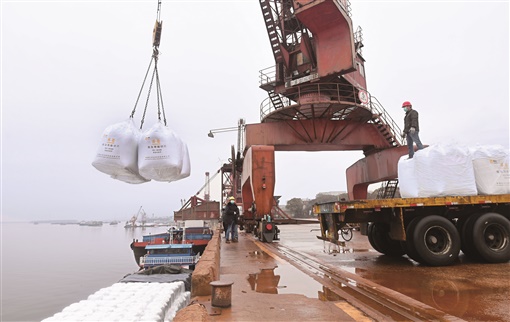 2月11日,长沙新港件杂散货码头,工作人员在忙着卸货。春节期间,港口及附近锚地停泊了70余艘船舶,将近15万吨货物待卸。从2月6日开始,新港公司在确保疫情安全和生产安全的前提下,实现码头部分生产作业,及时组织对钢材、矿石、原材料等重点物资装卸。目前,已吞吐货物5.7万吨。湖南日报记者 田超 通讯员 洪琳 摄影报道