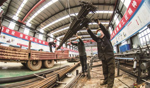 2月18日,中铁上海局常益长铁路四标段二号钢筋加工厂,工人正在吊装钢筋。该项目管段工程已于近日全线复工,在做好疫情防控的同时,确保安全质量、工程进度。湖南日报记者 童迪 通讯员 郭懿 摄影报道