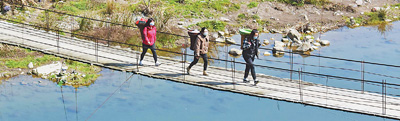 图为三位老师去学生家送教材。鲁礼安摄